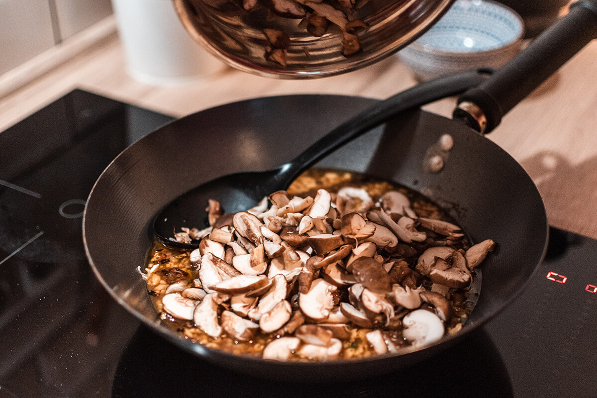 Du solltest alle frischen Zutaten im Supermarkt bekommen. Für die (vegetarische) Austernsoße (beispielsweise diese hier*) musste du wahrscheinlich in einen gut sortierten Asia-Supermarkt.