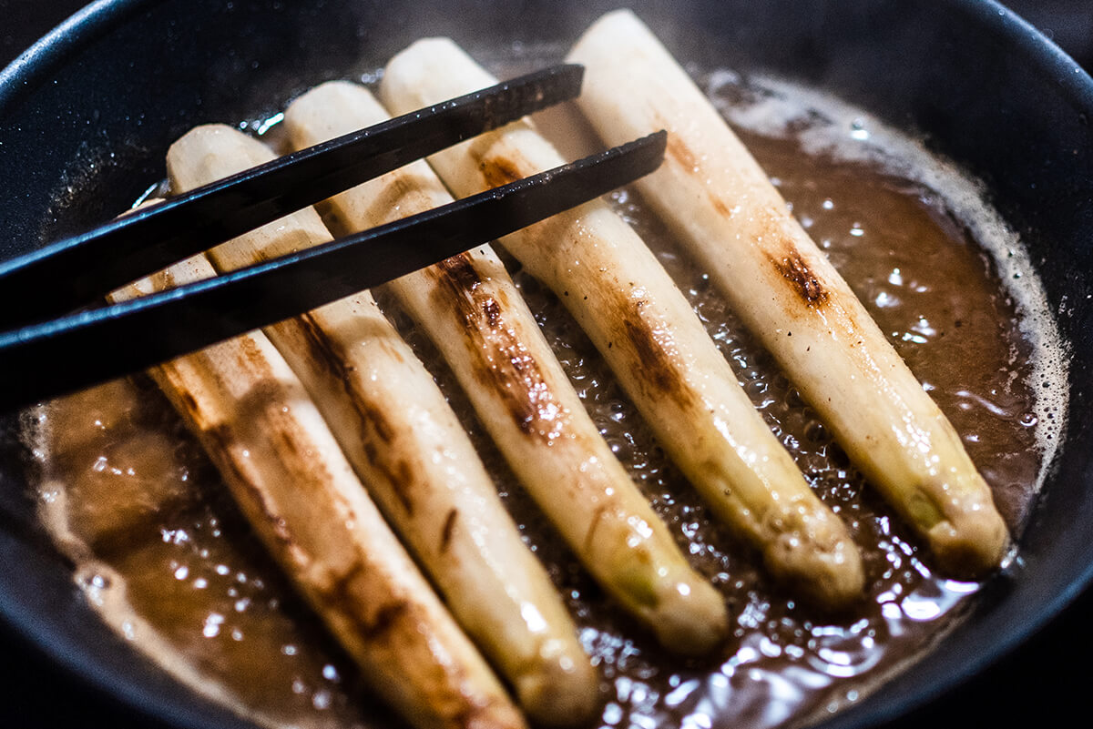 Zwar ist weißer Spargel saisonbedingt nur im Frühjahr und frühen Sommer erhältlich, aber dieses leckere Gericht lässt sich auch wunderbar mit grünem Spargel kochen.